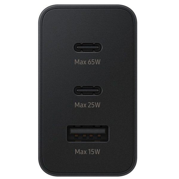 Samsung Φορτιστής Χωρίς Καλώδιο Trio 65W με Θύρα USB-A και 2 Θύρες USB-C Black (EP-T6530)
