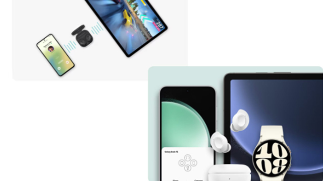 Σύνδεσε με ευκολία τις συσκευές σου απλά ανοίγοντας το καπάκι. Οι συσκευές Galaxy συνδέονται με ένα άγγιγμα. Επίσης, αν έχεις παραπάνω από μία συσκευές Galaxy όπως ένα Galaxy Tab S9 FE, τα ακουστικά αλλάζουν αυτόματα πηγή ήχου μεταξύ των συσκευών. Έτσι, όταν παίζεις στο Galaxy Tab σου, μπορείς να δεχτείς κανονικά μια κλήση από το Galaxy κινητό σου.