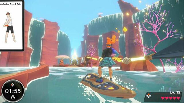 Διασχίστε τις πεδιάδες από γρασίδι, επιτεθείτε στους εχθρούς και ξαναγεμίστε τον μετρητή υγείας σας, πραγματοποιώντας μερικές στάσεις γιόγκα. Δύο νέα αξεσουάρ, το Ring-Con και το λουράκι ποδιών, μετρούν τις πραγματικές σας ενέργειες και βοηθούν στη μετατροπή τους σε κινήσεις εντός του παιχνιδιού. Με πρόσθετα minigames και προσαρμόσιμες ρουτίνες προπόνησης, το Ring Fit Adventure αποτελεί εξαιρετική απόδραση για παίκτες όλων των επιπέδων δεξιοτήτων και προγραμμάτων. Στη λειτουργία Adventure, νικήστε τους εχθρούς καθώς διασχίζετε περισσότερα από 100 επίπεδα σε πάνω από 20 κόσμους. Καθώς εργάζεστε σε κάθε επίπεδο θα κερδίζετε πόντους εμπειρίας. Εξερευνήστε έναν τεράστιο κόσμο φαντασίας και νικήστε τους εχθρούς χρησιμοποιώντας πραγματική άσκηση!