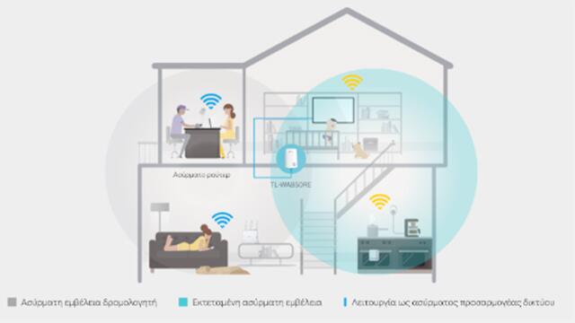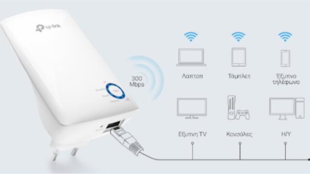 Το TL-WA850RE συνδέεται ασύρματα στο router ενισχύοντας και επεκτείνοντας το σήμα του σε περιοχές που δεν μπορεί να φτάσει μόνο του, επιτυγχάνοντας ταχύτητα 300Mbps.